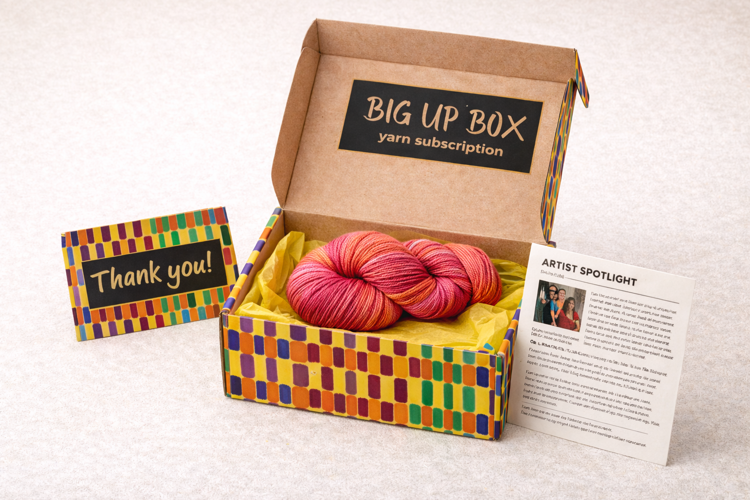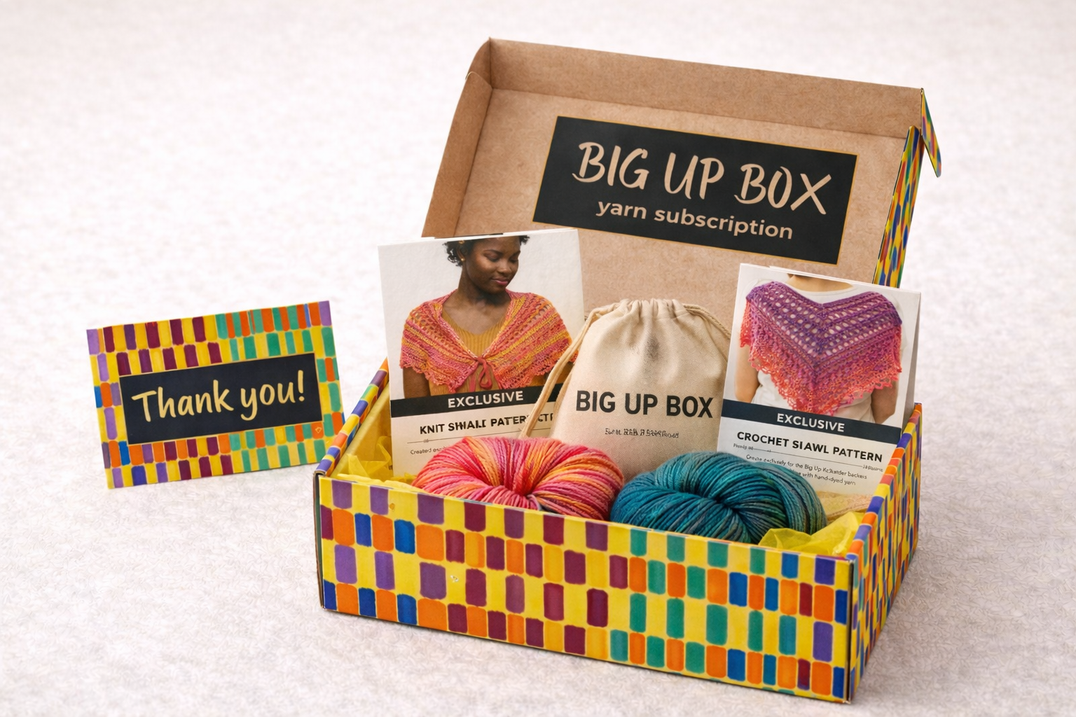Big Up Box is a curated quarterly yarn subscription rooted in celebration, culture, and community.